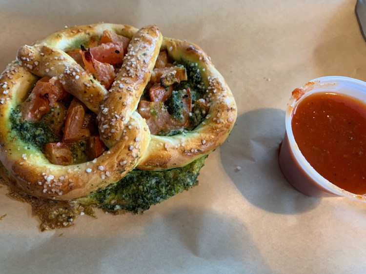 Picture it: a restaurant that has nothing but pretzels. And, this place has all kinds of pretzels — s’mores pretzels, pretzel sandwiches, and flavored pretzels with dipping sauces. As a pretzel lover, this is my idea of heaven. Thanks to the Hop Knot, that place is now heaven on earth.