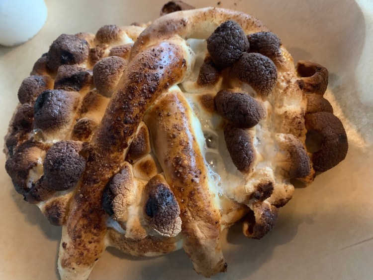 This time, I had the Caprese pretzel with sauce, and the s’mores pretzel. The s’mores pretzel was the perfect thing to have on the rainy day, because it was ooey, warm, and gooey. The Caprese one was mixed with pesto and tomatoes. Normally, it has cheese in it, but since I’m lactose intolerant, I did not have it.