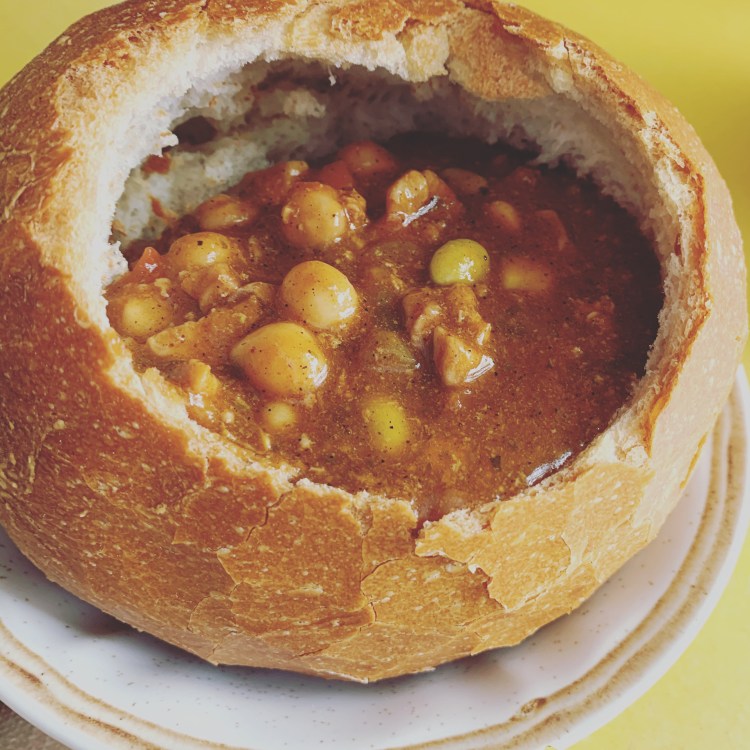 Ever have a set of favorites when you’re eating out at a restaurant? Well, I am definitely one that is afraid to try new things once I have an established favorite. No, I am not very adventurous. Last week, I was tired of the same old chicken noodle soup. I recently began to eat chili, so I figured why not? I loved it, and I ended up eating it three days in a row. I tried it in a bread bowl too, and that was so delicious.