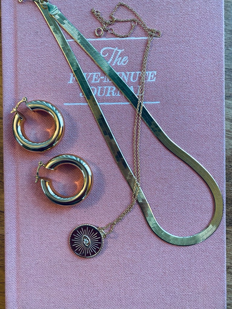 SV Decker Bubble Hoops: I love these earrings. They look like they are heavy, but they are actually really lightweight. They are gold-filled, but if you message the shop owner, Steffi, you may be able to get them in sterling silver. These go with anything, and since hoops are also trendy this year, this is an amazing gift.