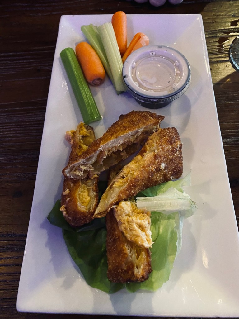 We both enjoyed the appetizer, which was not too spicy and came with a side of Blue Cheese Dressing. They were extremely delicious, and I highly recommend them if you’re a fan of eggrolls.