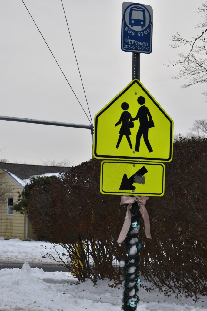It all began a single Facebook post from Milford resident Sharon Rutledge. Rutledge said she simply decorated her street sign as a way to spread some holiday cheer and then posted a picture of it to share on a Milford Community Facebook group called “You Know You Live In Milford, CT If. . .” The post, posted on November 28, 2020 by Rutledge, had a photo of Rutledge’s decorated street sign with the caption: “Milford challenge!! In an effort to bring more joy to out streets for the holiday season… let’s see how many street signs we can decorate!! Here’s mine! I’d love to see this catch on and you all post your pics!!!”