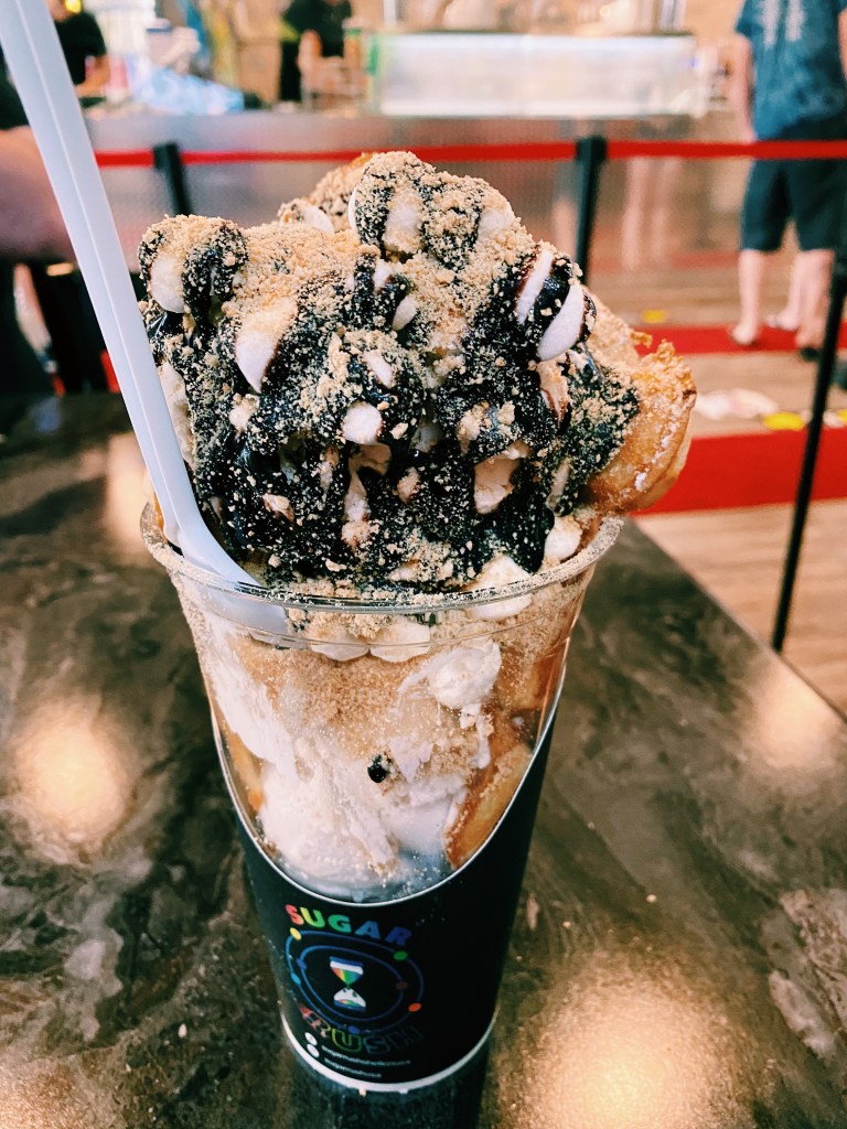 What I love about this place is that the vibe is so fun. There is a bright wall with a fun design — perfect for snapping a photo for the ‘gram (do people still say that anymore?). There is fun music playing from their speakers as well. Furthermore, the menu prices are relatively inexpensive, so you’re able to get a sweet treat without breaking the bank.