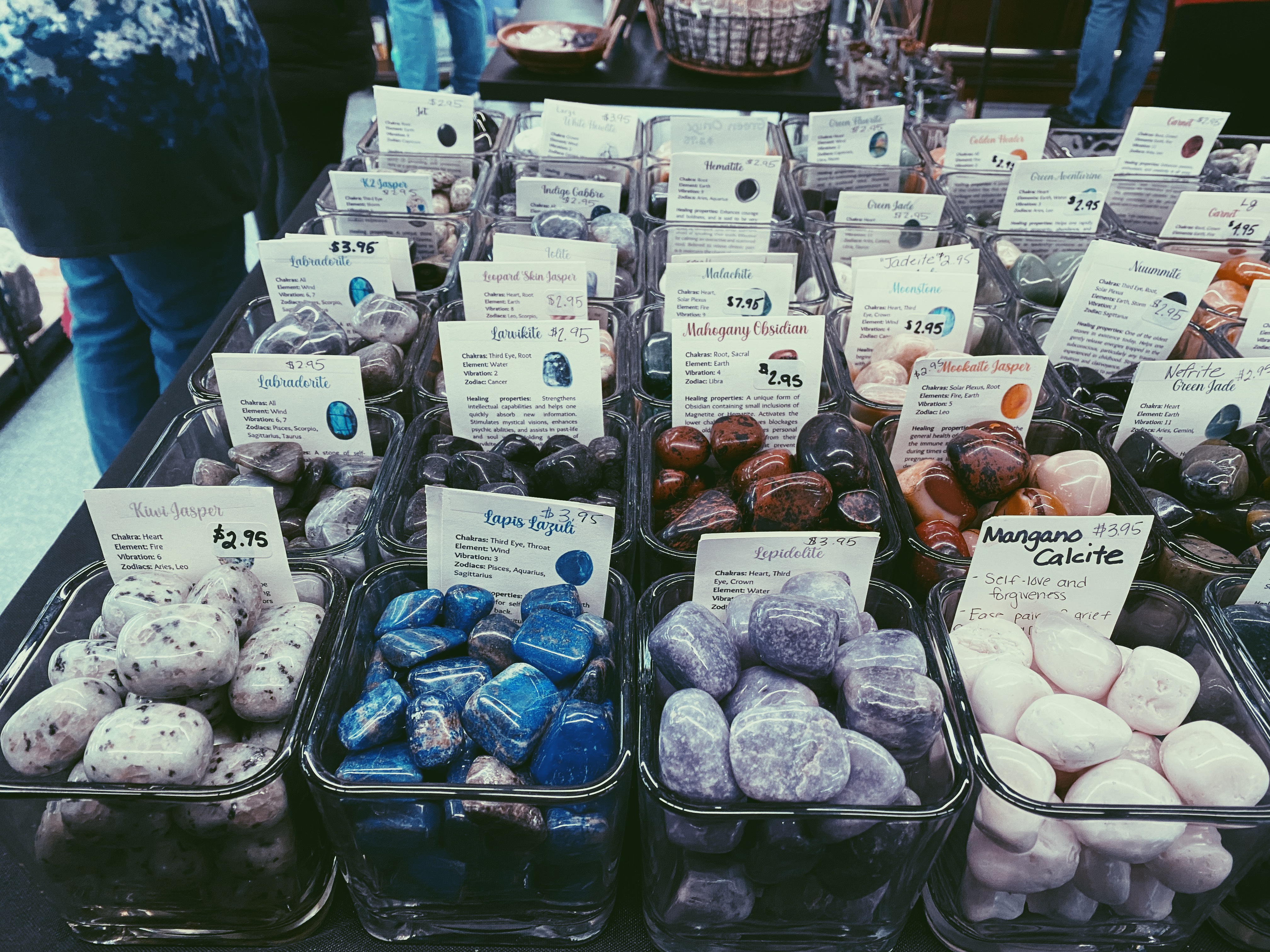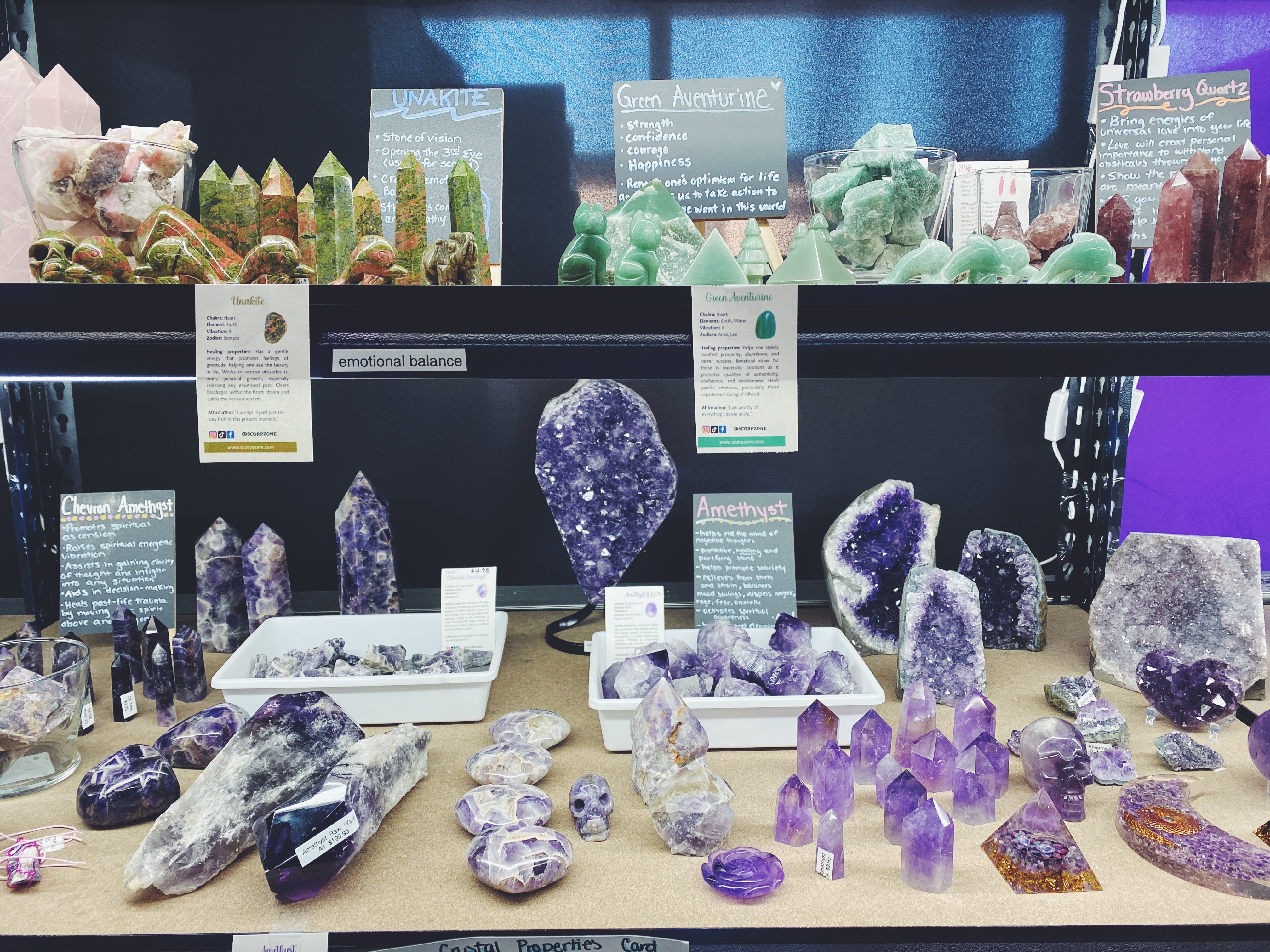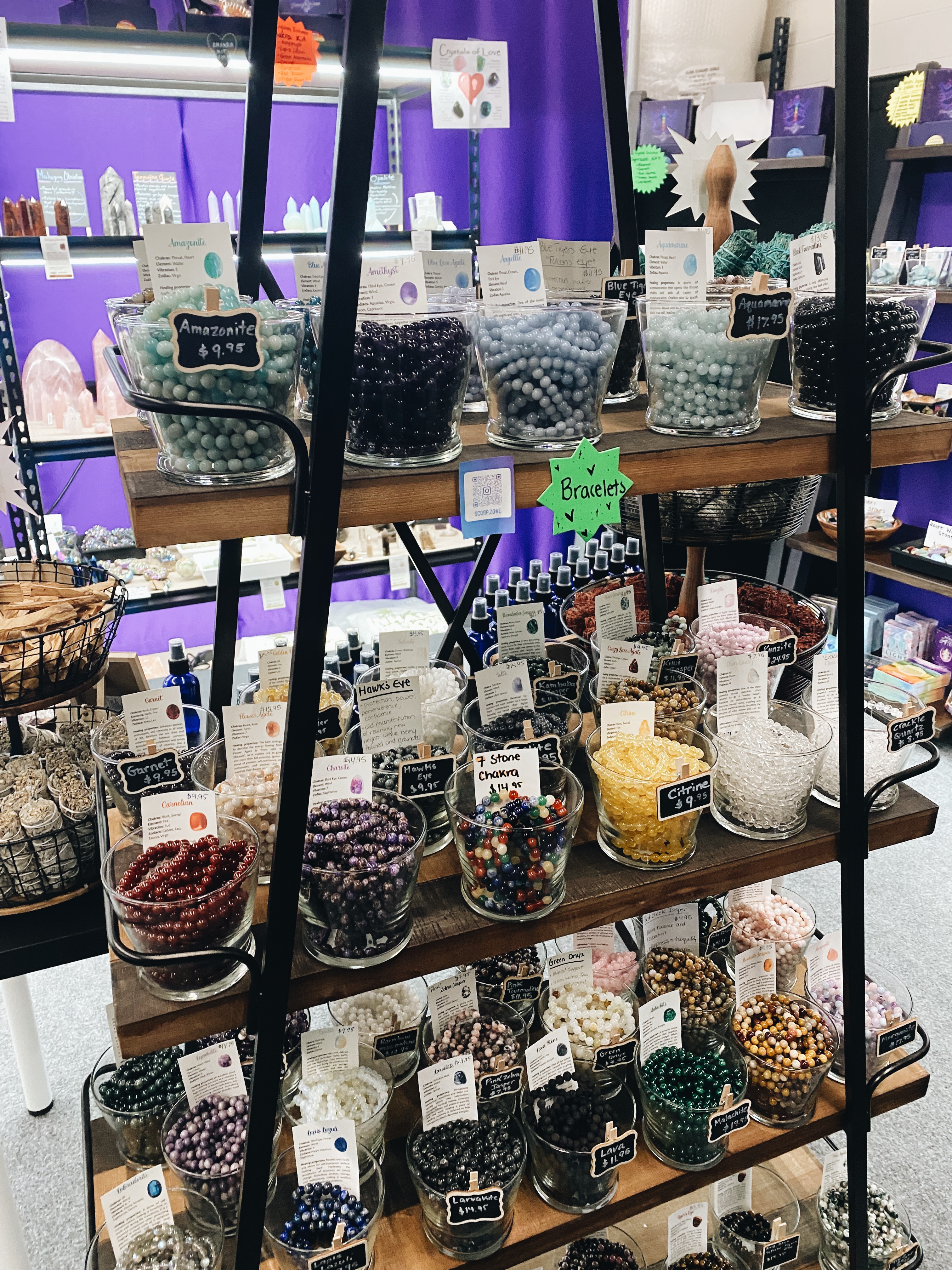 Then, as you go into the crystal room, you are greeted by every kind of stone that you can think of — from amethyst to opalite, and everything in between. Oh, and all of the colors of quartz that you can possibly think of. Crystals come in every size, from tiny ones that can be fit in pockets to larger sizes for display. Additionally, the shop offers a wide variety of jewelry, clothing, healing spray, selenite bowls, and kits that have every intention that can assist with any kind of struggle.