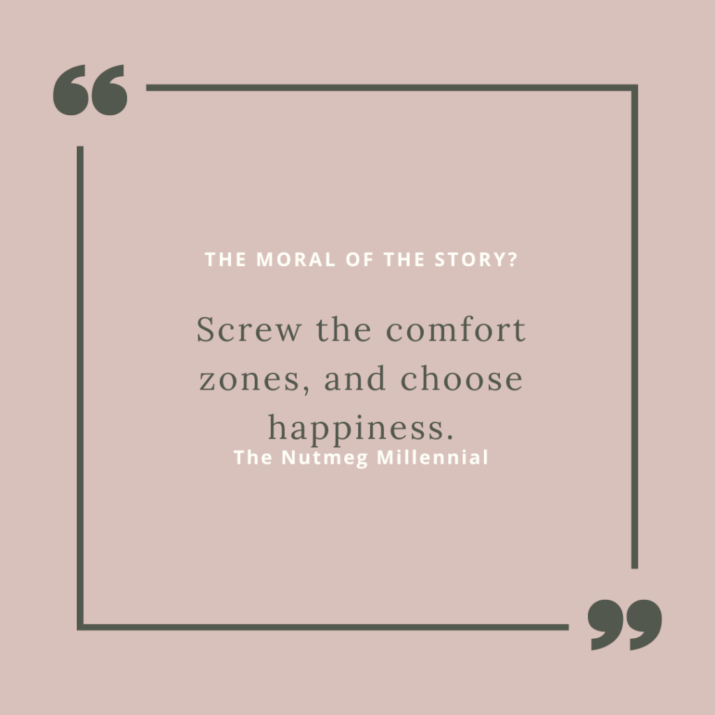 The moral of the story here? Screw the comfort zones, and choose happiness.