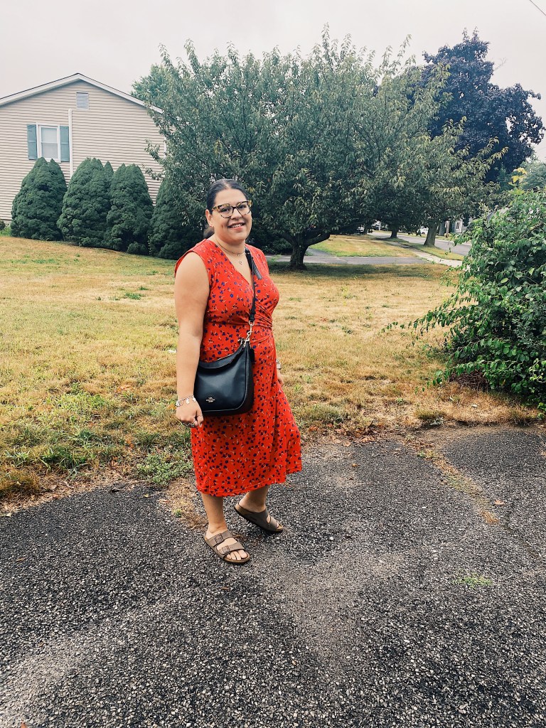 This outfit is super simple. I am wearing my Birksenstocks and paired it with a fun dress from Banana Republic from a few years back. When all else fails, dresses and cute sandals are my go-to.