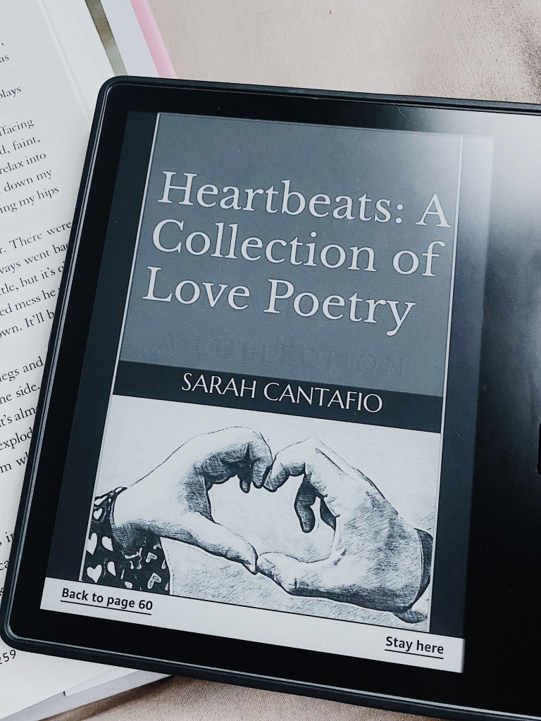 I was reminded of that when I picked up the book, Heartbeats by Sarah Cantafio. Cantafio is a Connecticut based author and met her love while attending college. Heartbeats is a 60 page poetry book, and each and every page is filled with love. The poems tell the story about her relationship with her fiancé — from their first meeting to the proposal. She describes moments, and even shares some of their challenges that of course is no match to the strength of love. It also discusses feelings of insecurity and feeling good enough to be with someone, especially after having a tough time finding a partner that is good for them.