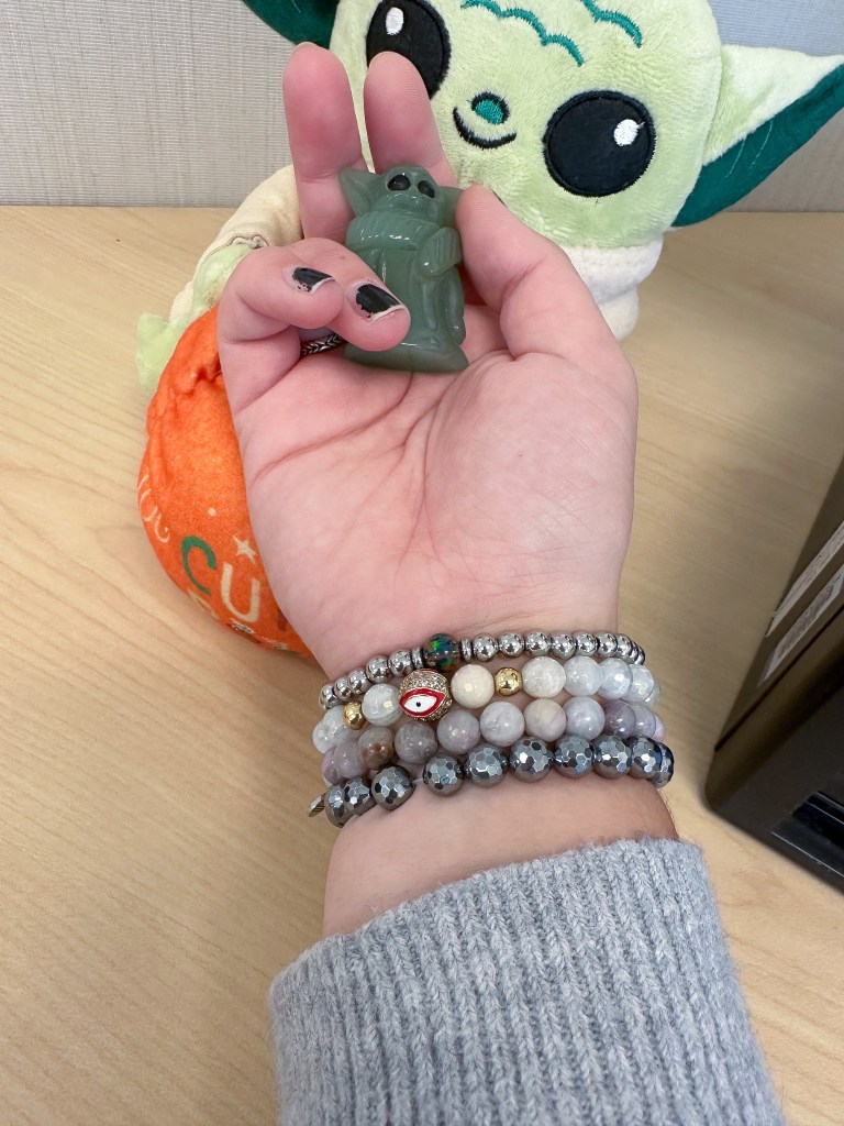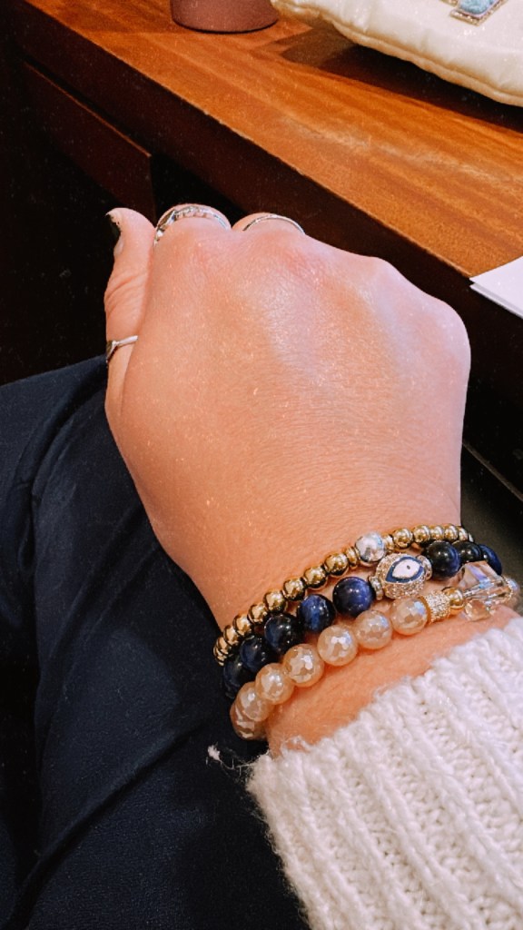 T Jazelle Cape Cod Bracelets: Like the others I mentioned, I have been obsessed with these all week because they do not cling and allow me to create stacks. These are a little different than the others I mentioned. Basically, they are stainless steel beads with opals or shell stones in the middle. Like I said, I love them because they don’t cling. These have been in my collection for a while and I’m so happy they have gotten some wear as of late.