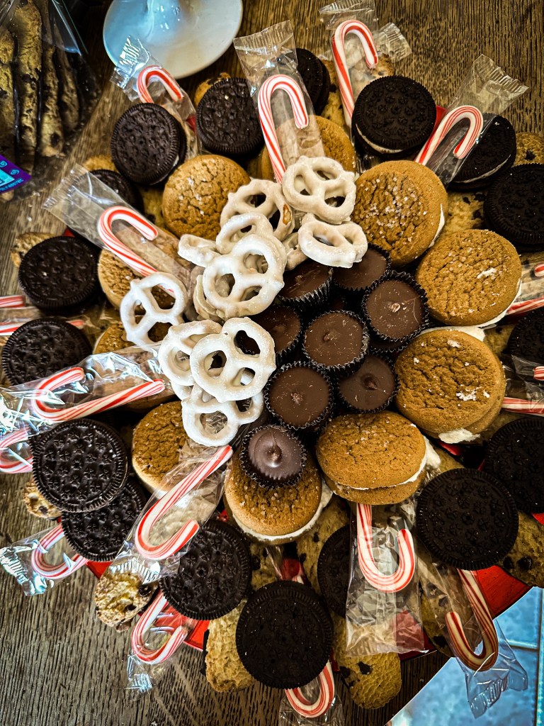 Merry Christmas all! Trader Joe’s is one of my favorite places to get snacks, and this year, I did not feel like baking Christmas cookies this year. So, I decided to create this board instead. I also would like to thank my future mother in law for the design assistance.