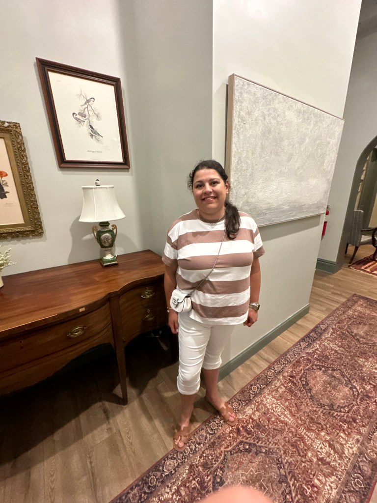At night, we went out for dinner, and I switched the jeans for a pair of white pants.