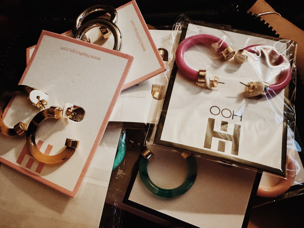 Hoo Hoops is a small women owned business that promises to be your go-to lightweight hoop earrings. The hoops come in two sizes: the minis (one inch), and the regular (two inches). They are made out of a lightweight material, and come in so many different colors from trendy to neutral. Like, any color that you can think of, they have. They even have some earrings with pearls and sparkle in them, which are so gorgeous. All of which add a perfect pop of color to any outfit.