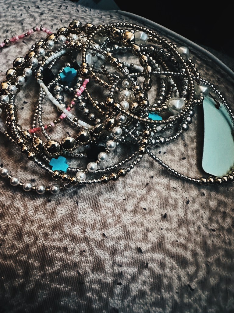 Let’s take a moment to talk about my favorite pieces of theirs, which are the bracelets. The bracelets come in silver, gold, pearl, and two-toned. They can be worn stacked,or on their own. The price of the bracelets range from $42 to $172, depending on the materials of the bracelet and the size of the beads themselves. The size of the beads range from 2 mm and up.