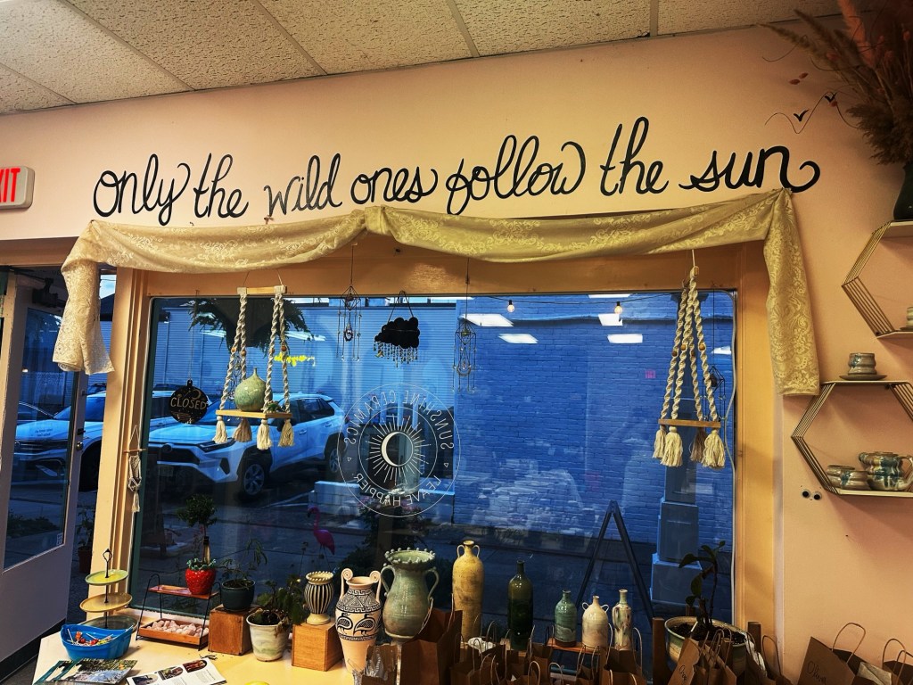 The decor reminds me of everything you may need to inspire cozy creativity. As someone who is not the best when holding a paintbrush, I felt joy, inspired, and safe when walking through the doors. The mural on the wall is bright and colorful, which of course was painted by Marie herself. What I liked was that space paid tribute to its past occupants, there was sweets to honor Wanda’s Sugar Shack and crystals in tribute to S.V. Decker.