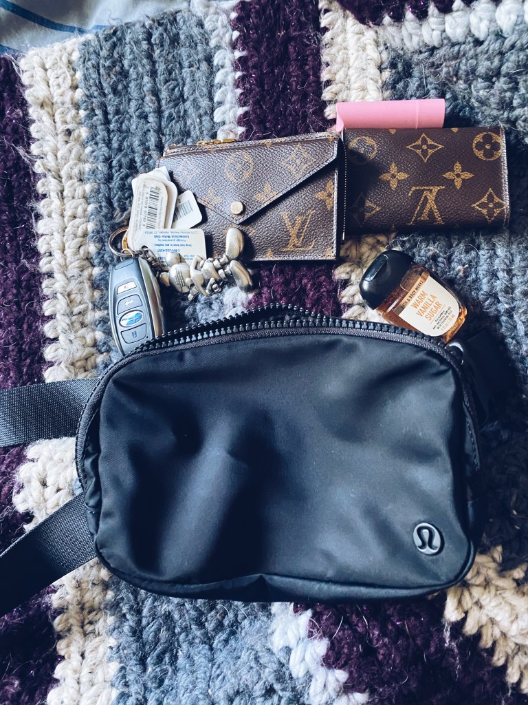 What I love about this belt bag is that it’s so comfortable to wear. I am a 40D bust, and I can fit into it comfortably with no problems. It also can hold a ton. Depending on my day, I either stick my Louis Vuitton recto verso with car keys, iPhone 11 Pro, hand sanitizer, chapstick and hand lotion with ease. I also have used this bag to carry my Louis Vuitton reverse monogram card case, 6 ring key holder, iPhone 11 pro, hand sanitizer, hand lotion, and chapstick. I also can fit my AirPods Pro when I do things in this manner as well. I also can fit other things such as period pads without any issues.