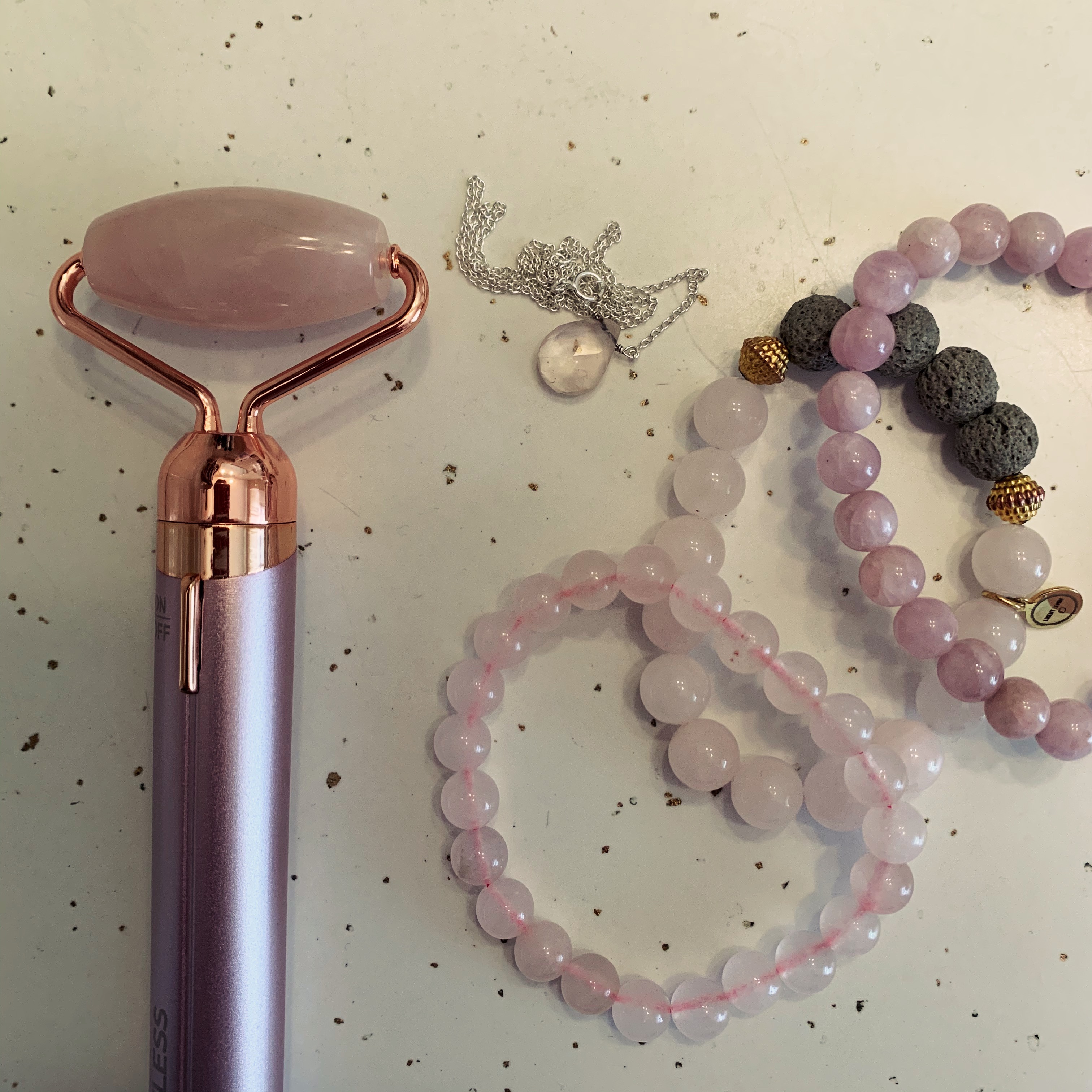 I wear rose quartz to not only for self love, but to remind myself I can take the time for healing. In addition to having rose quartz jewelry from Lucent Lemon and SV Decker, I also have a rose quartz roller that I use when I need some extra TLC — something that I highly recommend.